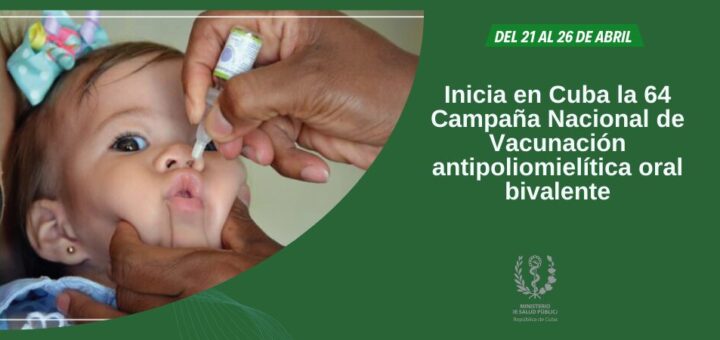 Del 21 al 26 de abril de 2025 inicia en Cuba la 64 Campaña Nacional de vacunación antipoliomielítica oral bivalente, coincidiendo con la 23 Semana de Vacunación de las Américas y la 14a Semana Mundial de Inmunización.