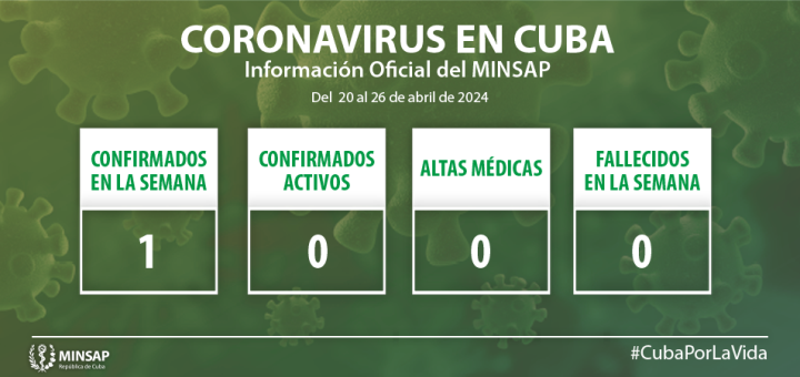 Del millón 115 mil 252 pacientes diagnosticados con la enfermedad 1 se mantiene ingresado activo. Se acumulan 8 mil 530 fallecidos (ninguno en la semana). En la semana hubo o altas, acumulándose 1 millón 106 mil 660. No se reportan pacientes graves, ni críticos confirmados en las Unidades de Cuidados Intensivos del país.