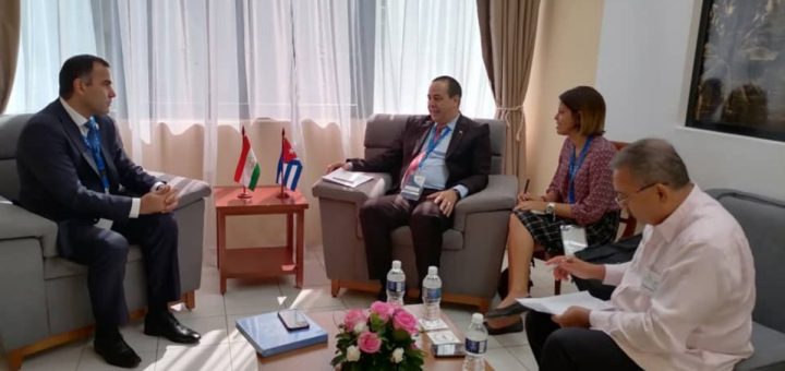 Durante la segunda jornada de la Cumbre de jefes de Estado y de Gobierno del Grupo de los 77 y China dialogamos con el vicecanciller de la República de Tayikistán, Farhod Salim, acerca de las potencialidades de nuestros países para la cooperación en el campo de la Salud, específicamente en lo referido a la industria biofarmacéutica y el intercambio académico y científico.