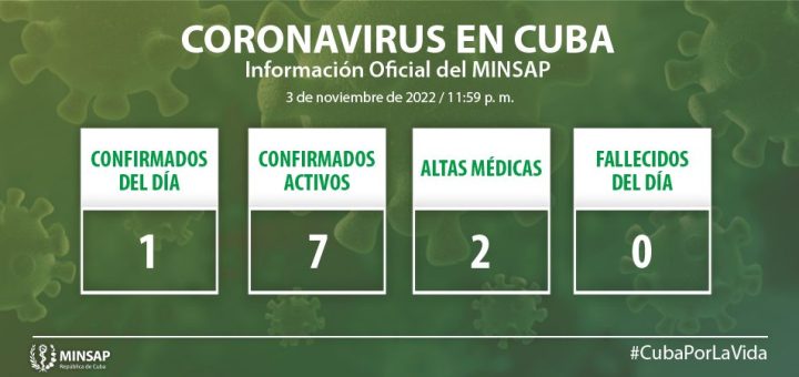 De 1 millón 111 mil 292 pacientes diagnosticados con la enfermedad, se mantienen ingresados 8, los 8 con evolución clínica estable. Se acumulan 8 mil 530 fallecidos (0 en el día), letalidad de 0,77% vs 1,04% en el mundo y 1,58% en las Américas; dos evacuados, 57 retornados a sus países, en el día no hubo alta, se acumulan 1 millón 102 mil 695 (99,2%). No se reportan pacientes graves ni críticos confirmados en los Cuidados Intensivos del país.