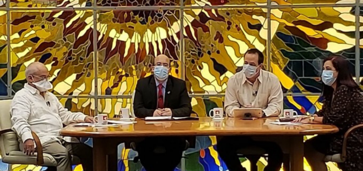 “La salud cubana frente a la COVID-19” fue tema hoy de una nueva emisión de la Mesa Redonda, con la presencia del Ministro de Salud Dr. José Angel Portal Miranda, la Dra. Consuelo Macías, Directora del Instituto de Hematología e Inmunología y el Dr. Manuel Romero, Director del Insituto de Medicina Tropical Pedro Kourí.
