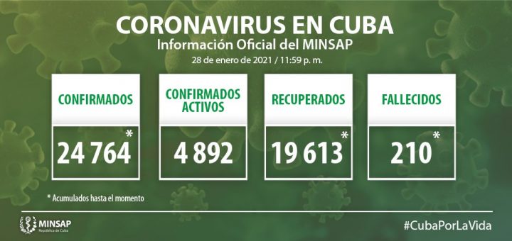 De los 26 mil 686 pacientes diagnosticados con la enfermedad, se mantienen ingresados 5 mil 558, de ellos 5 mil 508 con evolución clínica estable. Se reportan fallecidos 214 (uno en el día), dos evacuados, 49 retornados a sus países, (ninguno en el día) 553 altas del día, se acumulan 20 mil 863 pacientes recuperados. Se atienden en las terapias intensivas 50 pacientes confirmados, de ellos 22 críticos y 28 graves.