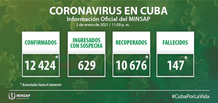 De los 12 mil 424 pacientes diagnosticados con la enfermedad, se mantienen ingresados mil 586, mil 563 con evolución clínica estable. Se reportan 147 fallecidos (uno del día), dos evacuados, 13 retornados a sus países, 182 altas del día, se acumulan 10 mil 676 pacientes recuperados (85,9%). Se atienden en las terapias intensivas 23 pacientes confirmados, de ellos 9 críticos y 14 graves.