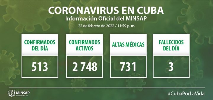 Del 1 millón 066 mil 927 de pacientes diagnosticados con la enfermedad, se mantienen ingresados 2 mil 748, de ellos 2 mil 715 con evolución clínica estable. Se acumulan 8 mil 494 fallecidos (3 en el día), letalidad de 0,80% vs 1,38% en el mundo y 1,78% en Las Américas; dos evacuados y 57 retornados a sus países. En el día hubo 731 altas, se acumulan 1 millón 055 mil 626 pacientes recuperados (98,9%). Se atienden en las ter