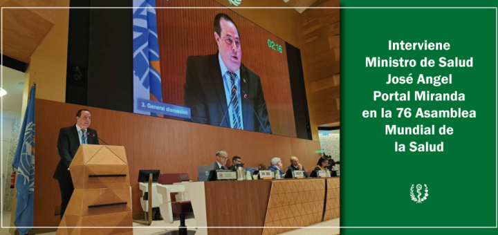 Este lunes el ministro de Salud Pública de Cuba, Doctor José Angel Portal Miranda, intervino en la 76 Asamblea Mundial de la Salud, donde reiteró la disposición de la nación de poner sus experiencias al servicio de la humanidad.