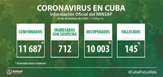 - Ciudadano cubano de 79 años de edad. Municipio San Miguel del Padrón. Provincia La Habana. Antecedentes Patológicos Personales: Hipertensión Arterial, Cardiopatía Isquémica e Hipoacusia. Estadía hospitalaria: 2 días. Presentó cuadro de agobio respiratorio, se intubó y ventiló, posteriormente se mantuvo con hipotensión arterial que requirió apoyo con aminas vasoactivas. Presentó parada cardiaca en asistolia, fueron realizadas maniobras de reanimación cardiopulmonar, que no son efectivas. Lamentamos profundamente lo ocurrido y transmitimos nuestras condolencias a familiares y amigos.