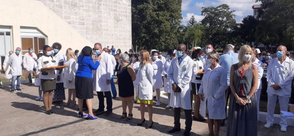 Ese galardón fue otorgado por las viceministras del Minsap doctoras Carilda Peña y Regla Angulo, y Santiago Badías, secretario general del sindicato del sector, en el acto efectuado en esa prestigiosa institución que este ocho de diciembre celebra su aniversario 84 de fundada.