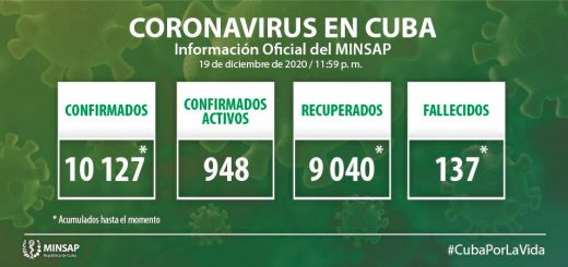 De 1 millón 112 mil 825 pacientes diagnosticados con la enfermedad, se mantienen ingresados 31, de ellos 30 con evolución clínica estable. Se acumulan 8 mil 530 fallecidos (no se reportan en el día), letalidad de 0,77% vs 1,0% en el mundo y 1,53% en las Américas; dos evacuados, 57 retornados a sus países, en el día hubo 10 altas, se acumulan 1 millón 104 mil 205 (99,2%). Se reporta 1 paciente grave confirmado en los Cuidados Intensivos del país.