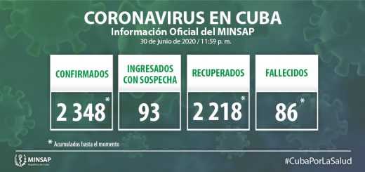 Del millón 115 mil 037 pacientes diagnosticados con la enfermedad, se mantienen ingresados 26 activos, todos con evolución clínica estable. Se acumulan 8 mil 530 fallecidos (ninguno en el día), letalidad de 0,77% vs 1,0% en el mundo y 1,53% en las Américas; dos evacuados, 57 retornados a sus países, en el día hubo 2 altas, se acumulan 1 millón 106 mil 422. No se reporta paciente nuevo grave, ni crítico confirmado en los Cuidados Intensivos del país.