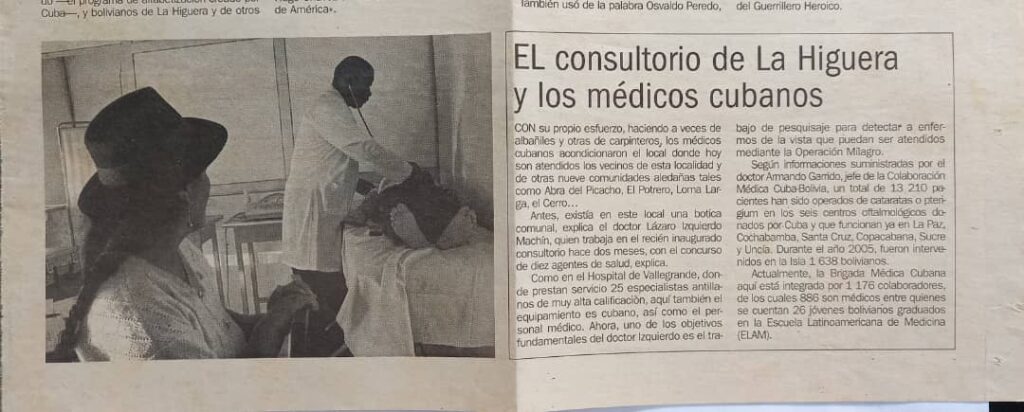 El 14 de junio de 2006, día del natalicio del Che, y con la presencia de Evo Morales, Álvaro García Linera y la jefatura de la misión, se inauguró oficialmente el primer puesto médico cubano en La Higuera. Y con ello, comenzaba una historia que merece ser contada: