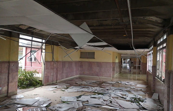 Señaló la penetración de agua en pisos bajos y filtraciones causadas por el deterioro del falso techo entre las principales afectaciones del Hospital General Juan Bruno Zayas, en tanto aseveró la continuidad en la prestación segura de la atención médica, debido a la óptima marcha de la caldera y el grupo electrógeno.