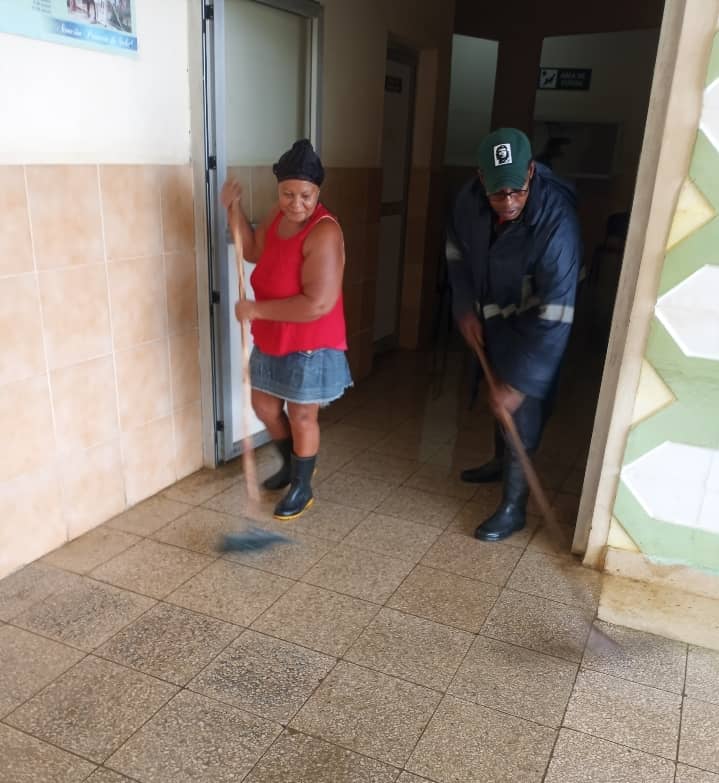 Desde la tarde del propio 29 de octubre comenzaron las labores de higienización en el sector de la Salud, y continuaron en las jornadas siguientes con el apoyo de Servicios Comunales y otros organismos.