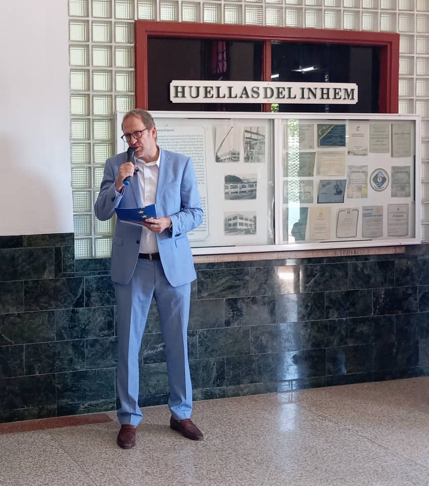 Jens Urban, embajador de la Unión Europea, en su discurso mencionó que: “Hay cosas que nos tocan a todos los humanos, como por ejemplo que haya agua sana y buena, por lo que es importante que laboratorios profesionales como estos, cumplan las normas nacionales e internacionales lo que representa un valor agregado no solamente para los cubanos sino también para todos.”