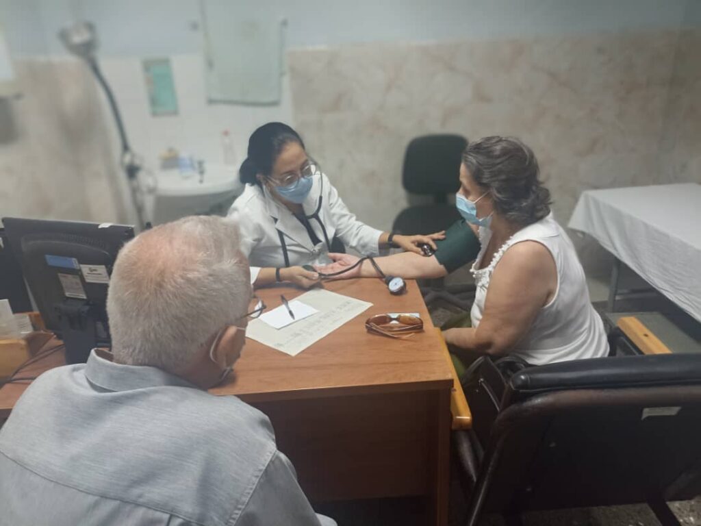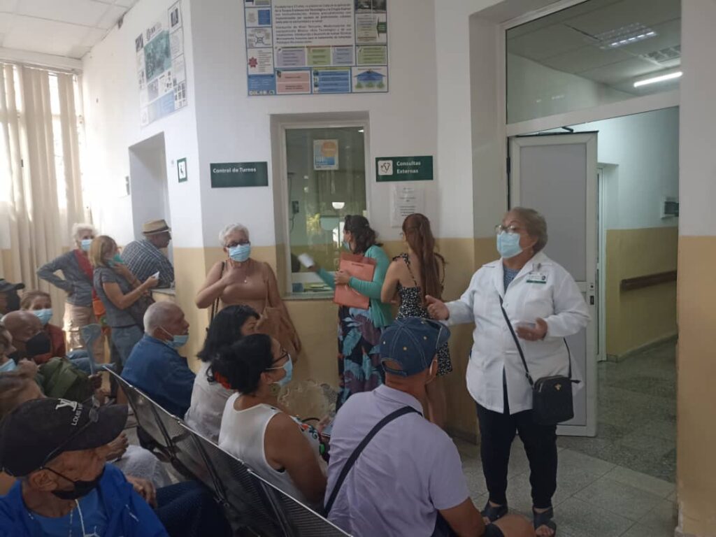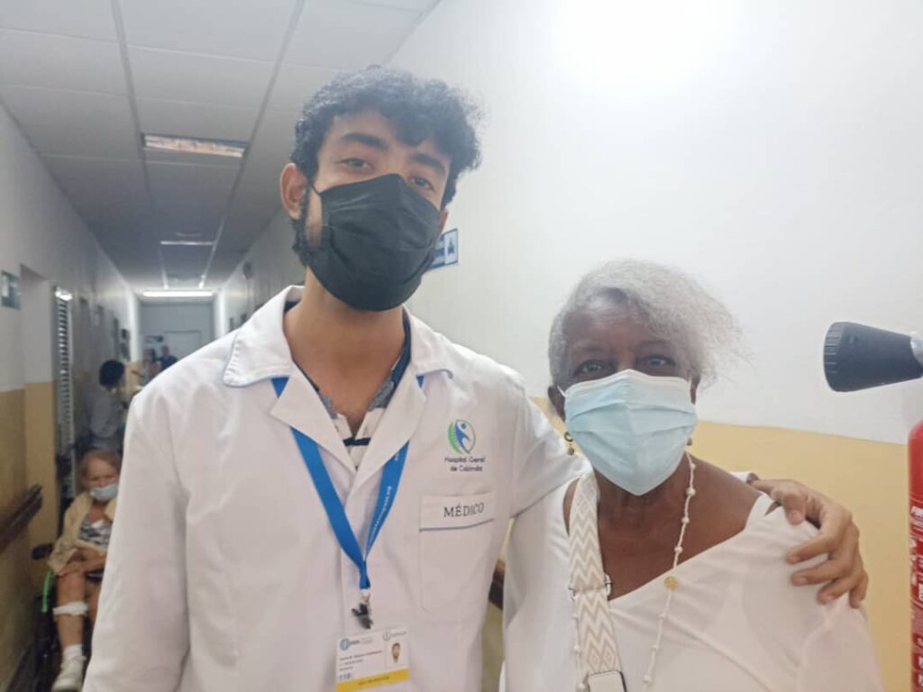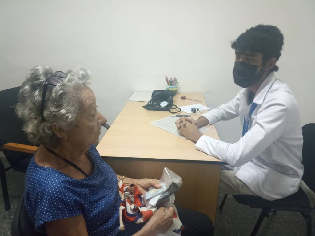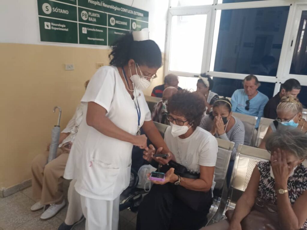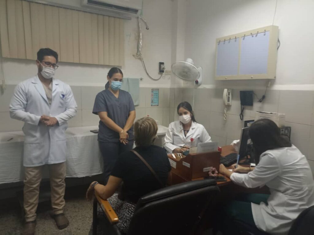 Unos metros más allá, la Dra. María Mesa Cárdenas, médica jubilada, se apoya en el brazo del residente en neurología Dr. Carlos Miguel Rodríguez para salir de la consulta. Él le indicó esteroides, vitaminas, antiinflamatorios y un seguimiento estrecho. Tiene el pelo blanco y un hablar pausado. Antes de irse, deja una frase que resume lo vivido: