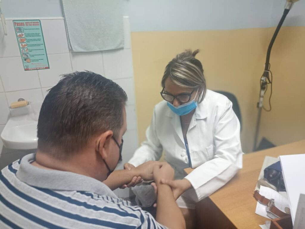 Están habilitadas siete consultas. Ahí está el Dr. Misiel Hernández, especialista en Anestesiología y Reanimación. Recorre las manos de sus pacientes para identificar dónde les duele más, piensa en los diagnósticos que más allá de la clínica puedan funcionar en cada caso e indica procederes intervencionistas en quienes presentan neuropatías post infecciosas, una de las manifestaciones más complejas del virus.
