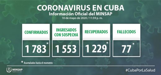 • Ciudadano cubano de 56 años de edad, residente en el municipio Lisa, provincia La Habana. Es contacto de un caso confirmado anteriormente. Se encuentra ingresado en el Hospital “Salvador Allende”. Mantiene evolución satisfactoria.