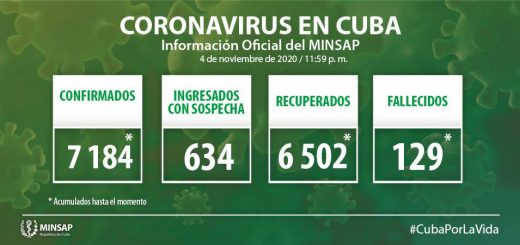 - Ciudadano cubano de 75 años de edad, residente en el municipio Cotorro, provincia La Habana. Contacto de caso confirmado anteriormente, relacionado con el evento del Centro Provincial de Protección Social. Se mantienen en vigilancia 69 contactos.