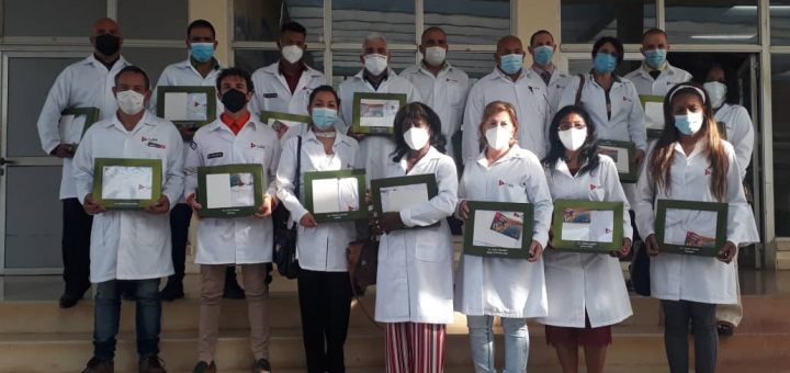 El Presidente de la República de Cuba, Miguel Díaz-Canel Bermúdez, intercambió esta mañana, mediante videoconferencia desde la capital hacia el resto del país, con integrantes del Contingente Internacional de Médicos Especializados en Situaciones de Desastres y Graves Epidemias Henry Reeve, que colaboraron en el enfrentamiento a la COVID-19 en seis naciones.